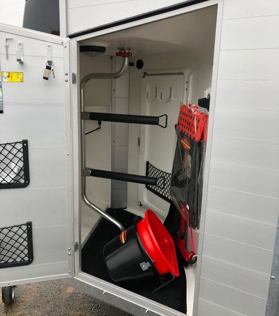 Offered with a  Standard Rear Door-Ramp Combination! Taller Groom Door – generous SKA tack cupboard, accessible from both outside and inside the horse trailer – plus a larger space for you and your horses. The SKA is a stylish and practical entry price trailer in the 18hh class.