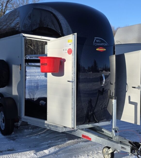 The Big Champion is the entry-price model of Böckmann’s 18hh models. It is welcoming to large and small horses. Generous 33″ wide stalls are comfortable yet supportive for your horses, with ample head space ahead of the chest bar.  You can easily fit the stall to the horse you are transporting, due to the adjustable stall bars. 7’8″ internal height accommodates the larger warm bloods easily. Riding on the exclusive WCF suspension, your horses have the smoothest possible ride.