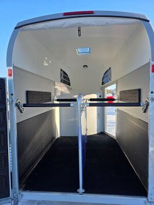 15’6″ Total Length,  7’8″ Internal Height , Two Generous 33″ wide stalls, Dual Axle
