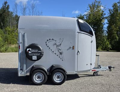 Taller walls offering a taller entrance door, a larger tack locker and a longer floor plan. Presented in the SILVER METALLIC colour, this unit has an added Air Vent in the roof and Large Competition decor by Jan Künster (As seen in the gallery).