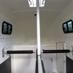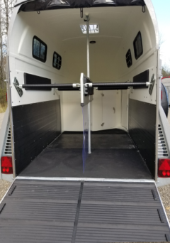 The Grand Master SKA’s extra length allows for side positions for portable feed buckets. Hay net rings on each side of the trailer, and trailer tie loops at the chest bar. Two sliding tinted windows on each wall for more air flow. The roof vent plus vented & integrated wind screen in the rear storm canvas, offers you lots of air flow control. Adjustable stall bar settings create the correct stall space for your horse. Central post and swivel dividers, known from the Portax models, allows you increased room for loading, grooming or tacking up on the trailer!