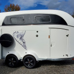 Extra long and rated for 2700kg/5952lbs GVWR, this trailer has room for 2 horses to 18 hh, hay and your tack. Two 33″ wide stalls + internal height 7’6″ with an extra 2′ ahead of the chest bar offers room for you to change or sit out of the rain when at a competition or trail. Easily towed by mid to large SUVs and all trucks, the Grand Master will turn heads wherever you tow it.