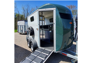 This is a wonderful trailer if you trailer alone. Easy to load your horse using either the ramp or step-up option. When you arrive, open your front ramp, drop the chest bar and walk your horse out the front. No more undoing the trailer tie and running to the rear of the trailer to unload. A sporty trailer for both English and Western rider alike!