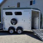 7’8″ Internal Height, Total Trailer Length: 17’6″, Straight Load 2 horse – 18 hands, Two 33″ wide stalls,