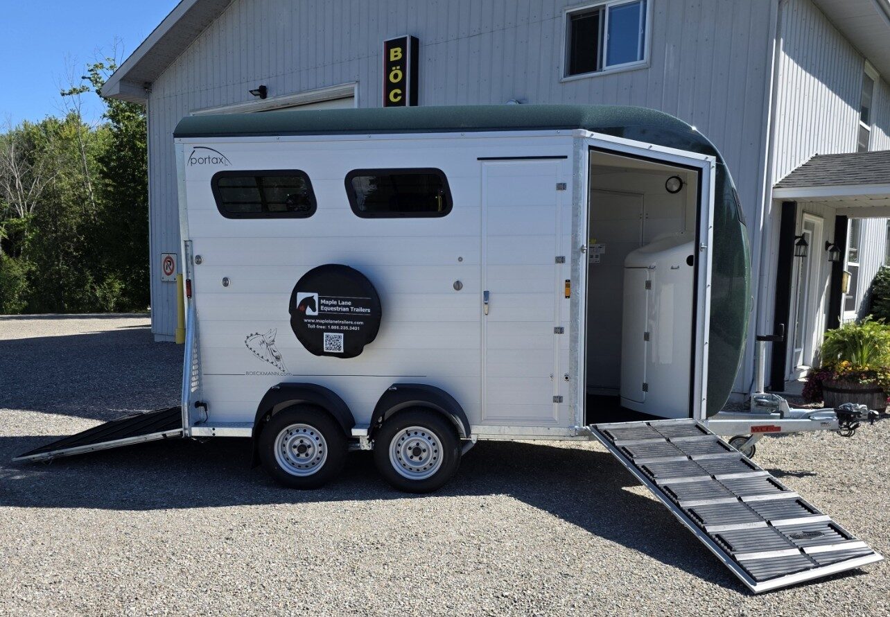Picture yourself at an open field event – tacking up at your trailer with easy access to your tack from outside the trailer. Does it start raining? Of course- its a Canadian Horse Show! Hang out in the trailer with your horses in the extra space found in the Portax L K.